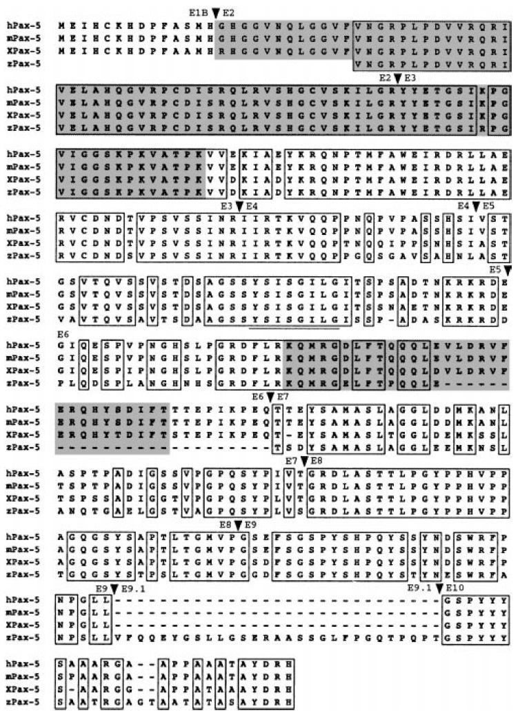 Pax-5(1) splice variant has been aligned with various vertebrate Pax-5