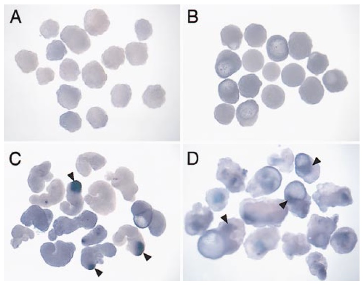 reference embryos reached stage 28. Arrowheads indicate patches of