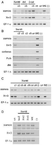 the expression of siamois and Xnr3 induced by Xwnt8. C: RT-PCR of animal caps co-injected with