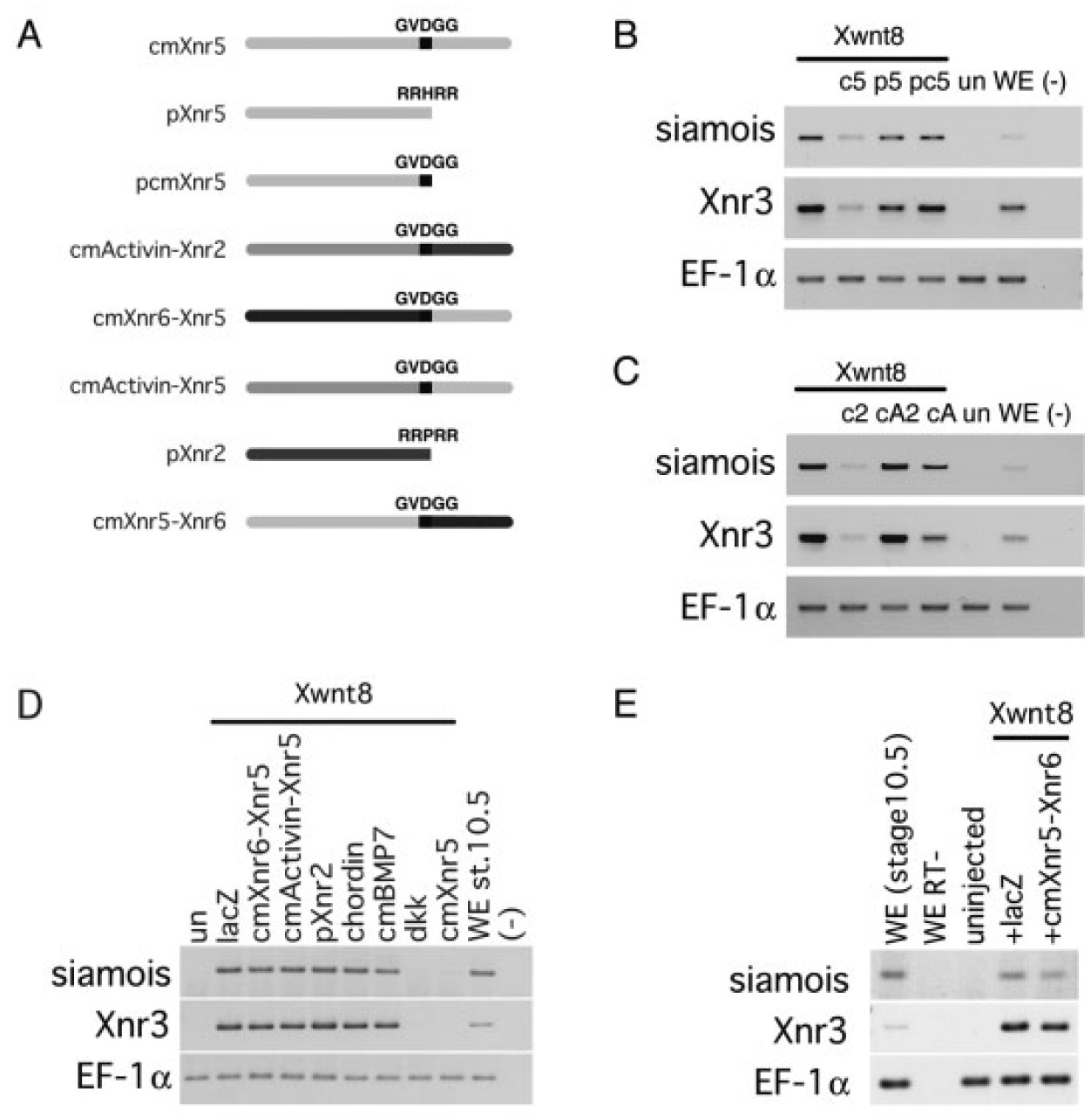 cmXnr6-Xnr5 encodes the pro domain of Xnr6, the mutated cleavage site, âGVDGG,â and the