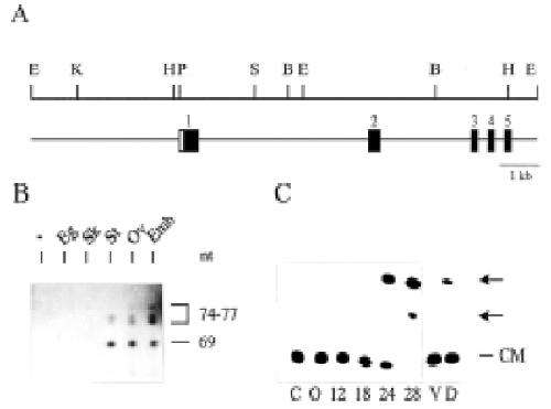 and 74-77 nt are detected in embryo and smooth muscle tissues. (C) CAT