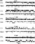 Figure 6. Representative single-channel traces at a saturating concentration of cGMP. Single-channel currents for all 10 constructs were recorded in the presence of 16 mM cGMP with the membrane voltage clamped at +80 mV. The upper and lower dotted lines indicated the open and closed levels, respectively, and are separated by 2.3 pA. |