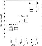 Figure 14. Box plots of rate constants for the C0 ↔ O1 ↔ C2 scheme. Box plots of the k01, k10, k12, and k21 rate constants for the C0 ↔ O1 ↔ C2 from 14 different patches. Values for the rate constants were determined by HMM analysis. The horizontal line within each box indicates the median of the data, boxes show the 25th and 75th percentiles of the data, and whiskers show the 5th and 95th percentiles. Extreme data points are also indicated. |
