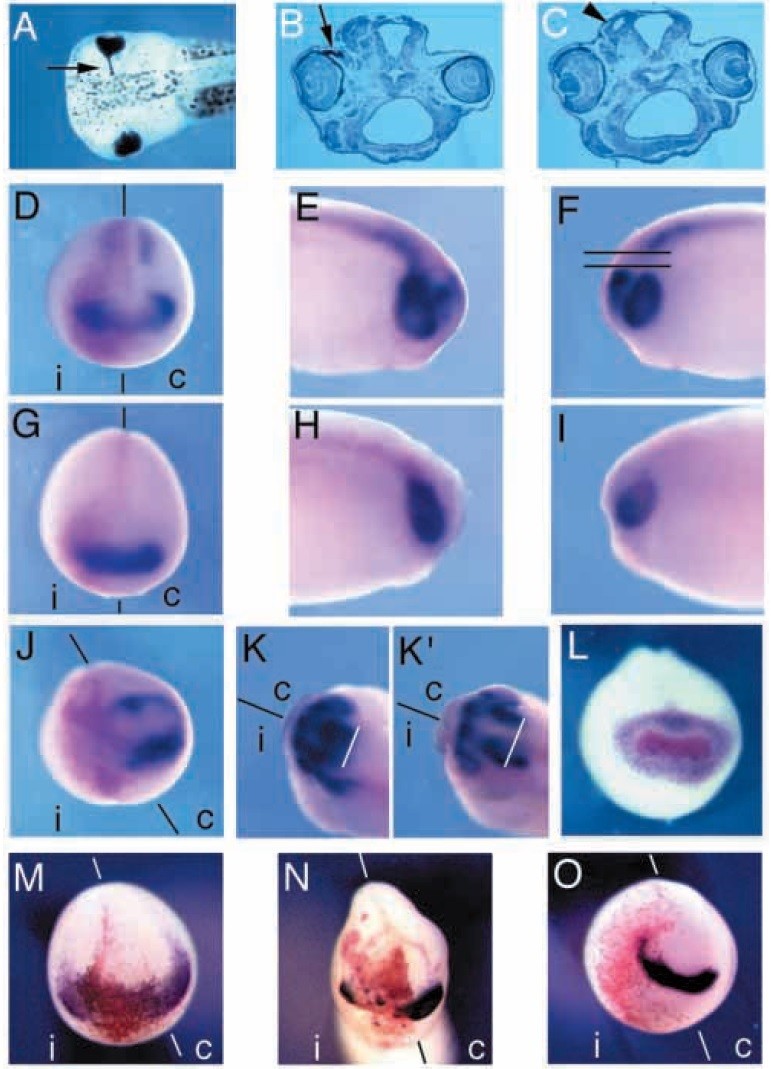 Xrx1-EnR RNA. (I-L) Embryos analyzed for Xsix3