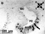 that separate aquatic from aerial cavities. (B) Hybridization of Xenopus laevis olfactory cavity with sense riboprobe; no signal was found. (C) High magnification