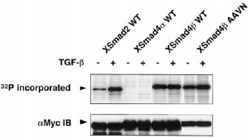 mutated version of XSmad4b (AAVN). Cells were metabolically labeled