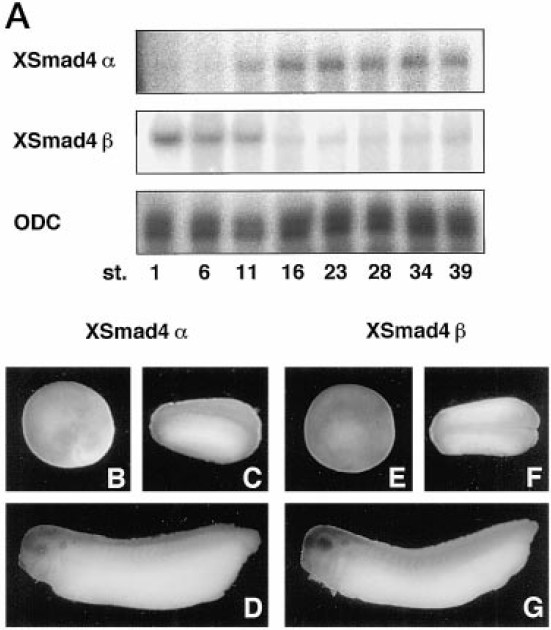 XSmad4b. A, XSmad4a and XSmad4b transcripts are present during