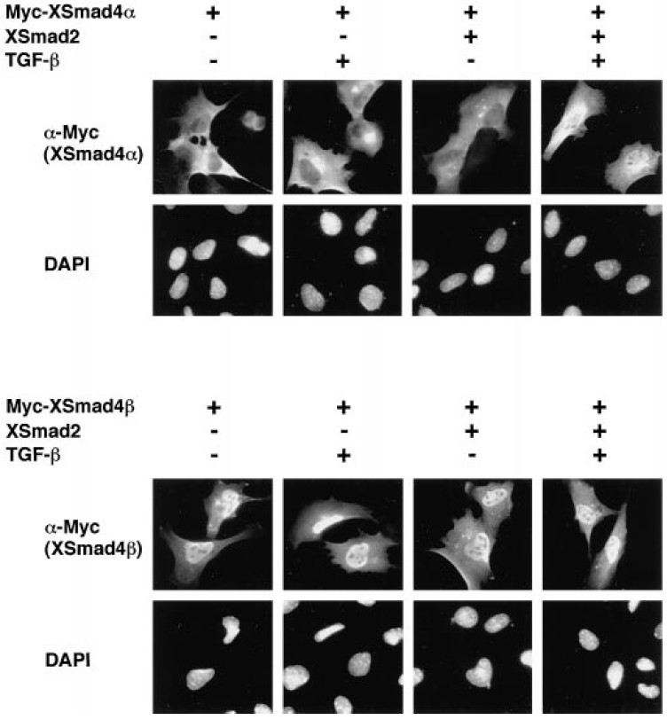 FIG. 6. Subcellular localization of XSmad4a and XSmad4b proteins.