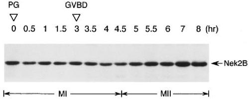 FIG. 5. Expression of Nek2A and Nek2B during oocyte maturation.