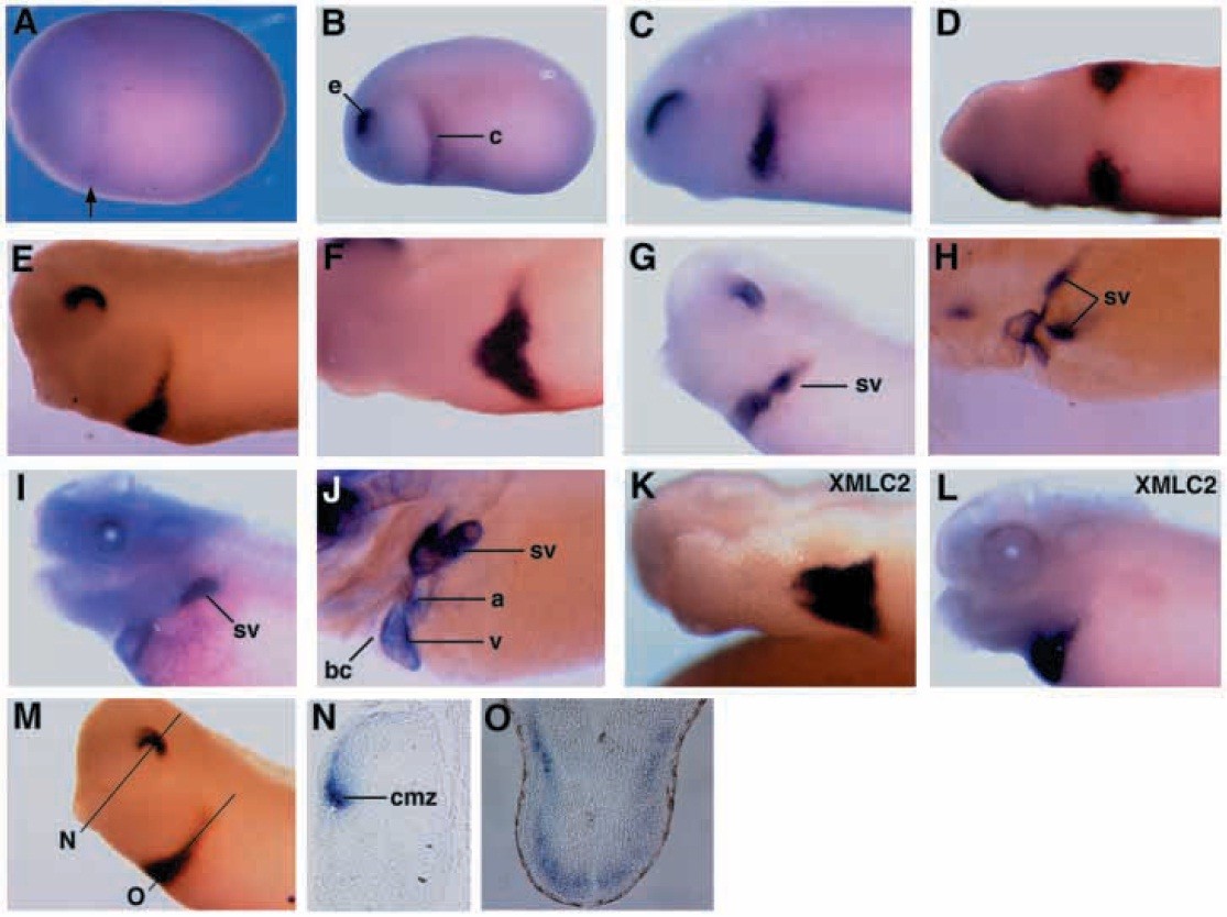 (D) Stage 40embryo. No XMLC2 expression is detected in the dorsal