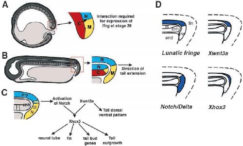 neural tube. (D) Summary of the expression of key genes at the time of tail outgrowth. Tailbud expression of lfng, Xwnt3a, Notch, Delta and