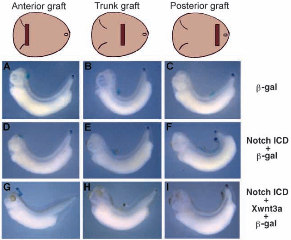 develop an ectopic tail. The X-gal stain shows that grafted tissue