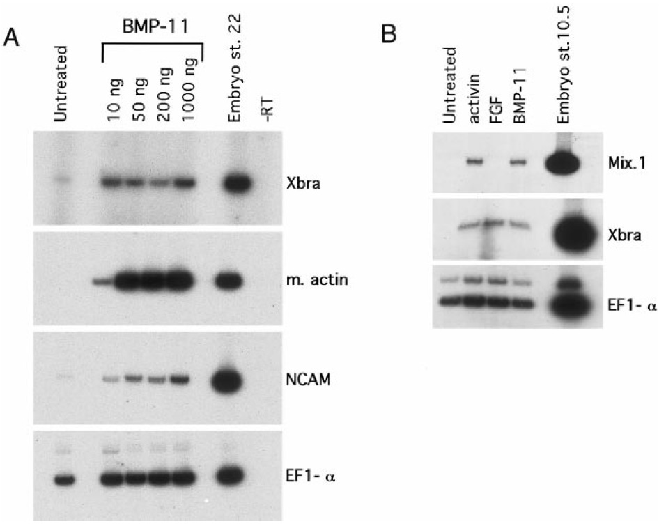 actin induction by BMP-11. EF1-a is a loading and reverse transcription control and untreated animal caps serve as a negative control.