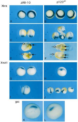 b-galactosidase mRNA and 0.2 ng p120 mRNA at the four-cell stage were allowed to develop until late gastrula (12â12.5), fixed in MEMFA,