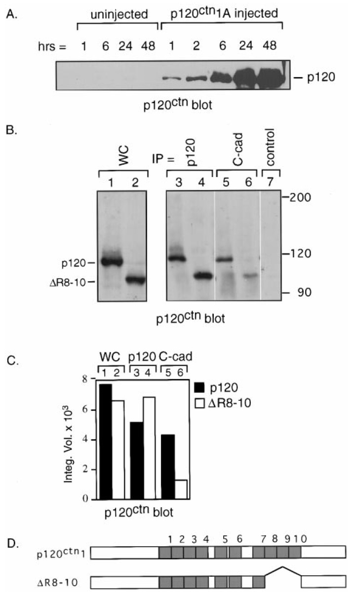 (C) Quantitation of p120ctn and DR8-10 bands in B. (D) Diagram of
