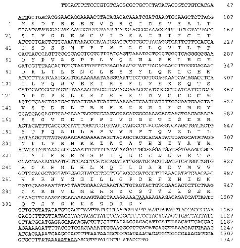 in the left and right indicate those for amino acid residues and nucleotides, respectively. Initiation codon (ATG), termination codon (TAA),