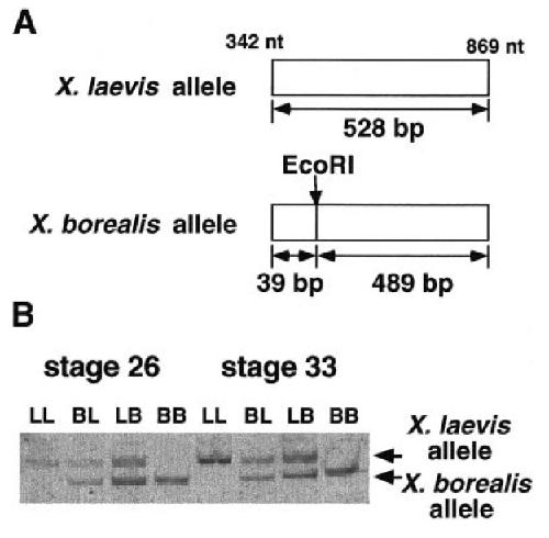 from X. laevis (LL), reciprocal F1 hybrids between X. laevis and X.