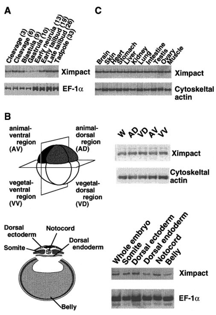 of Ximpact during embryogenesis. Total RNAs (25 ng) isolated