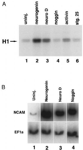 injected with 25 pg noggin (lanes 4â6), 50 pg neurogenin (lanes