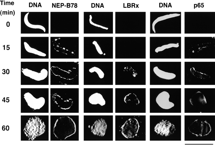 Temporal differences in the appearance of NEP-B78 and an LBR-like protein during Xenopus nuclear envelope reassembly reflect the ordered recruitment of functionally discrete vesicle types.