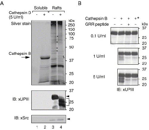 Uroplakin III, a novel Src substrate in Xenopus egg rafts, is a target for sperm protease essential for fertilization.