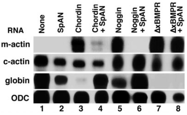 3), noggin (lane 5), and a dominant-negative BMP receptor