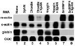 cytoskeletal actin (c-actin), or a combination of blood-specific aT4-globin and the uniformly expressed ornithine decarboxylase (ODC). The