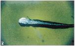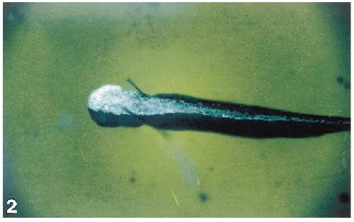 most cells on the right (upper) half of this tadpole (stage 35/36, 2.1 days of development).