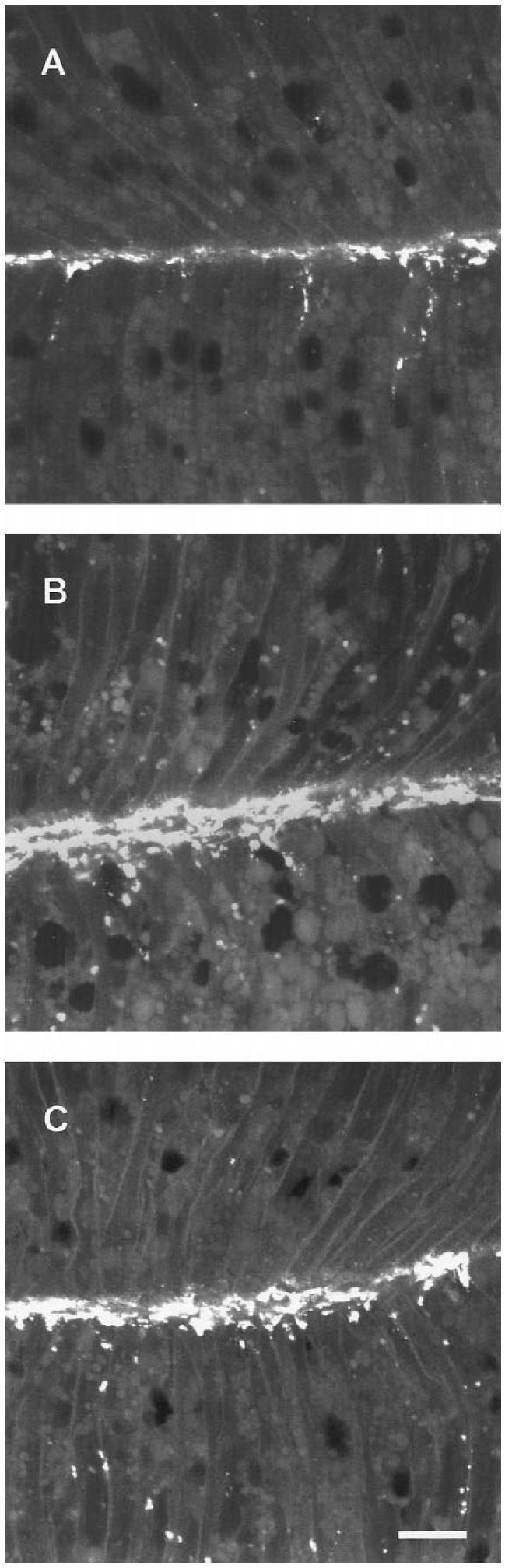 taken at 1-mm intervals, are shown. Bands of AChR aggregates