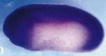 adam11( ADAM metallopeptidase domain 11 ) gene expression in Xenopus laevis embryo, NF stage 22, as assayed by in situ hybridization, dorsal view, anteriorleft.