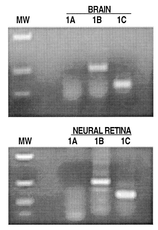 receptor 1A, 1B, and 1C sequences. PCR bands of the predicted size