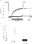 Figure 6. Effect of genistein on the rod CNG channels at different times after patch excision. Genistein was applied on closed rod CNG channels at different times after excision from the oocyte, and residual current was measured after application of cGMP. Bar graph represents mean ± SEM for five patches at 1 and 10 min after excision. During the first 10 min after excision, the K1/2 for cGMP activation gradually declines (see inset), resulting from tyrosine dephosphorylation (Molokanova et al., 1997). The bar graph shows that channels are equally sensitive to genistein, independent of phosphorylation state.