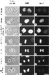 Figure 3. Immunolocalization of pEg7 in Xenopus Xl2 culture cells. The cells were observed in phase contrast (A, D, G, J, M, P, S), and DNA was stained with DAPI (B, E, H, K, N, Q, T). pEg7 was detected by indirect immunofluorescence using purified anti–pEg7 G antibodies (C, F, I, L, O, R, U). (S) Arrow indicates the midbody. Bar, 10 μm.