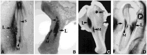 directly adjacent to Shh expression (S arrowhead), and a larger lateral domain some distance away (L arrowhead). B. Explants sometimes