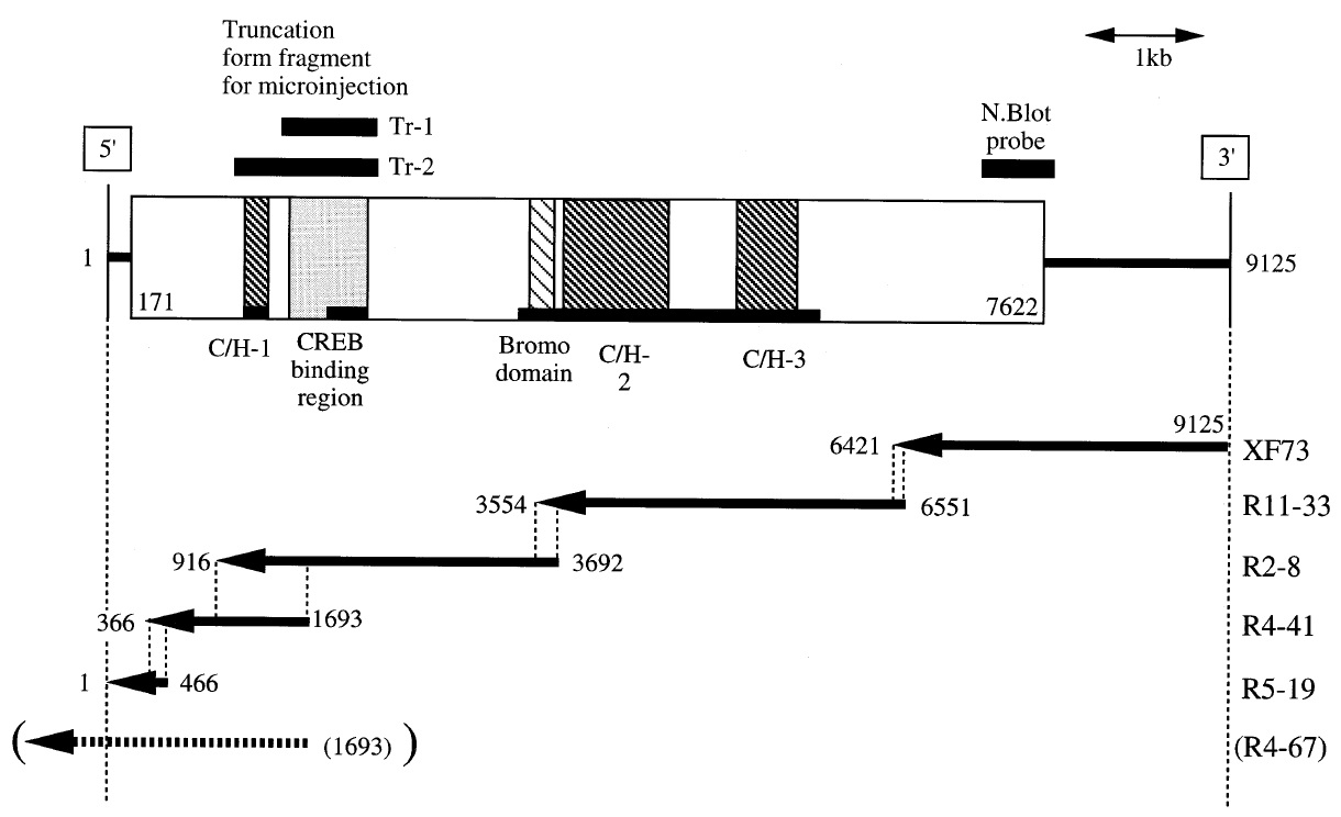 model of full-length Xenopus p300/CBP cDNA. The open white box indicates the Xenopus p300/CBP protein coding region and