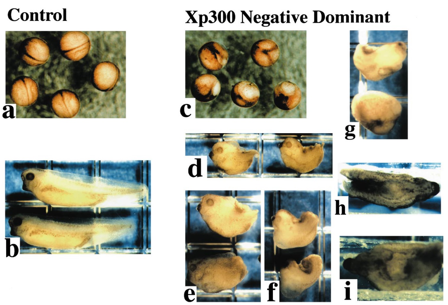 (distilled water injection): (a) dorsal views of early neurula embryos (stage 16), (b) tadpole embryos (stage 37). (c^f) Truncated Xp300