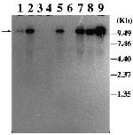 5: kidney; lane 6, muscle; lane 7, spleen; lane 8, testis; lane 9,