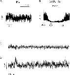 Figure 11. Calculated unitary conductances as a function of the experimental bandwidth. Curves shown for KvLQT1 channels (□), IKs channels (▪), D76N IKs channels (•), and S74L IKs channels (▾). The curves were obtained measuring the variance at 70 mV, using cut-off frequencies from 0.25 to 25 kHz, and then scaled the value of conductance determined at 25 kHz. Data were sampled at 80 kHz and digitally filtered at the indicated frequencies. Each curve represents the average of three patches.