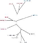 Fig. 8. Analysis of tissue relatedness. Expression profiles of 206 cDNAs expressed in more than one tissue were selected. These profiles were arranged in a matrix and compared among each other using Fitch Margoliash algorithm to compute a tree using the implementation from the Phylip package. Length of lines corresponds relative distance between tissues (issue relatedness. Mesodermal and ectodermal derivatives are coloured in red and blue, respectively. |