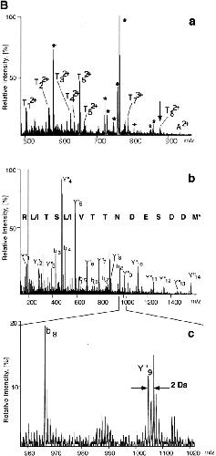 Rapid 'de novo' peptide sequencing by a combination of nanoelectrospray, isotopic labeling and a quadrupole/time-of-flight mass spectrometer.