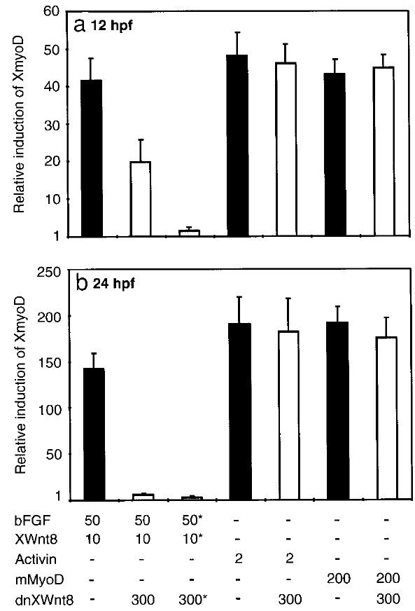 9.75 and 10.5 hpf. The relative XMyoD induction is calculated as