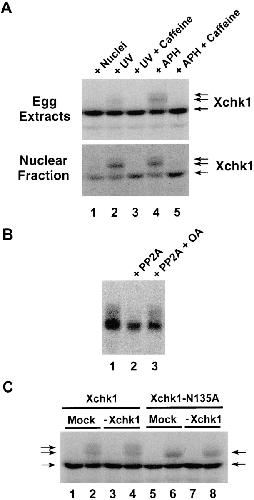 The Xenopus Chk1 protein kinase mediates a caffeine-sensitive pathway of checkpoint control in cell-free extracts.