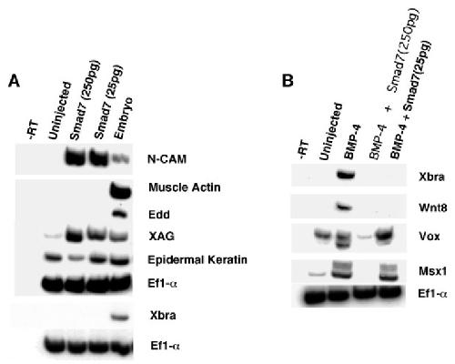 marker. (B) Smad7 blocks BMP-4-mediated induction of