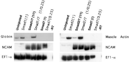 Smad1 alone and coinjected with Smad7 (amounts as indicated in