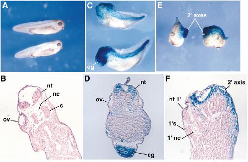 hybridization was performed using Gsc or Vox antisense probes. (A) Uninjected embryoâGsc is expressed in the dorsal lip. (B) Embryo