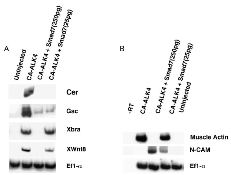 with 500 pg of CA-ALK-4 alone and coinjected with Smad7