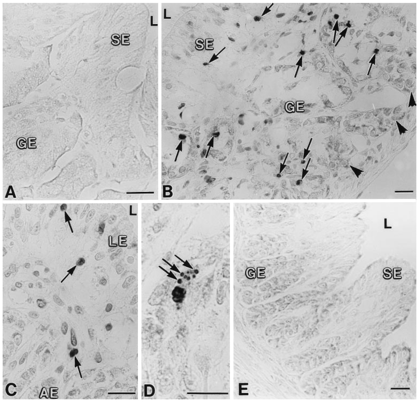 (GE) are negative. L Lumen. B At stage 62. Positive cells