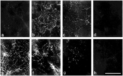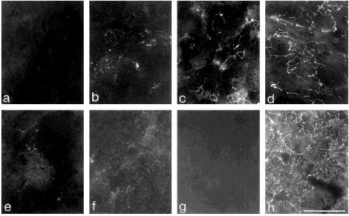 stages 91⁄2 (g) and 101⁄2 (h). All stained with antibody to bovine FN. Same