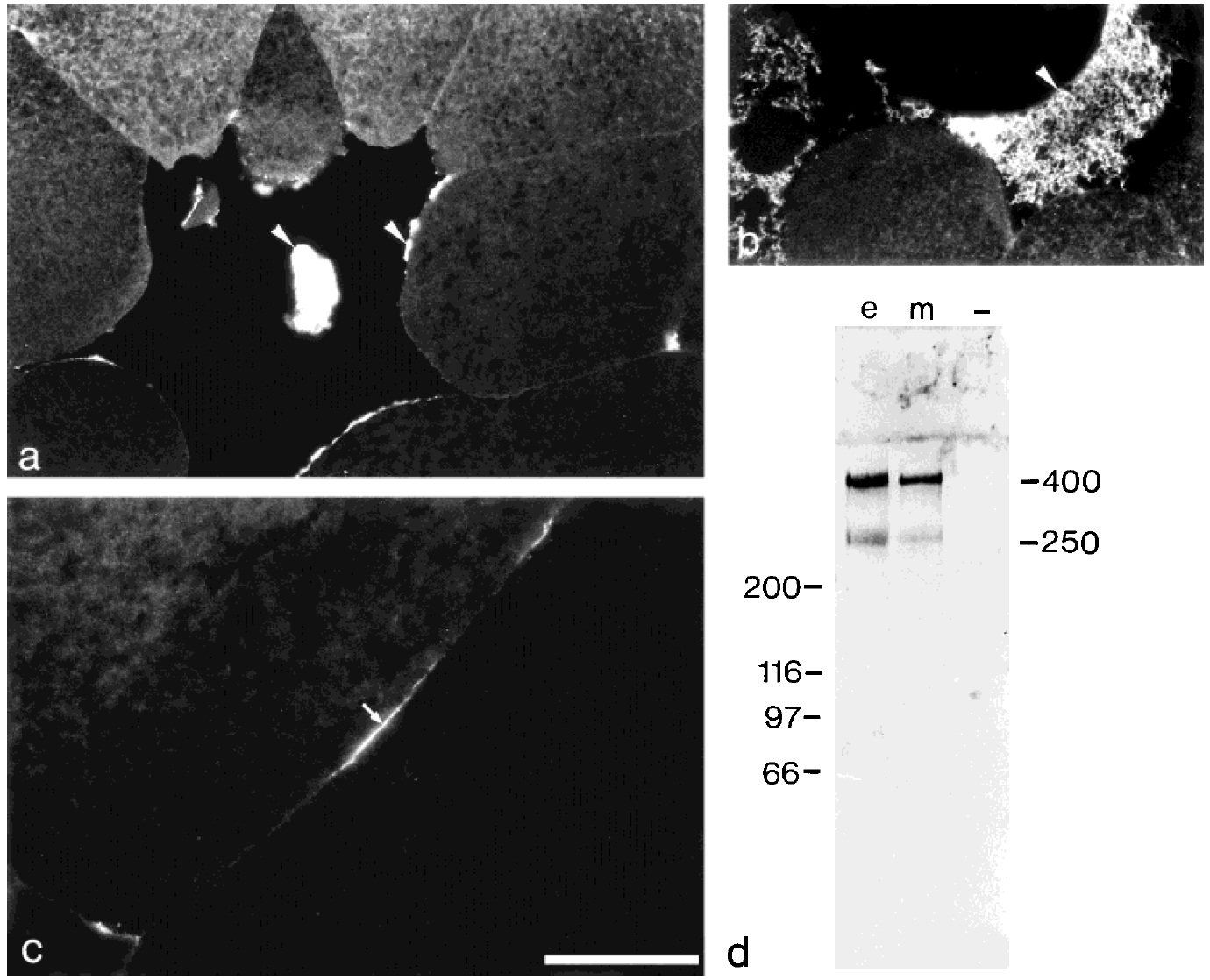 (arrowhead), FN fibril matrix on the BCR (large arrow). Bar 5 50 μm. b: