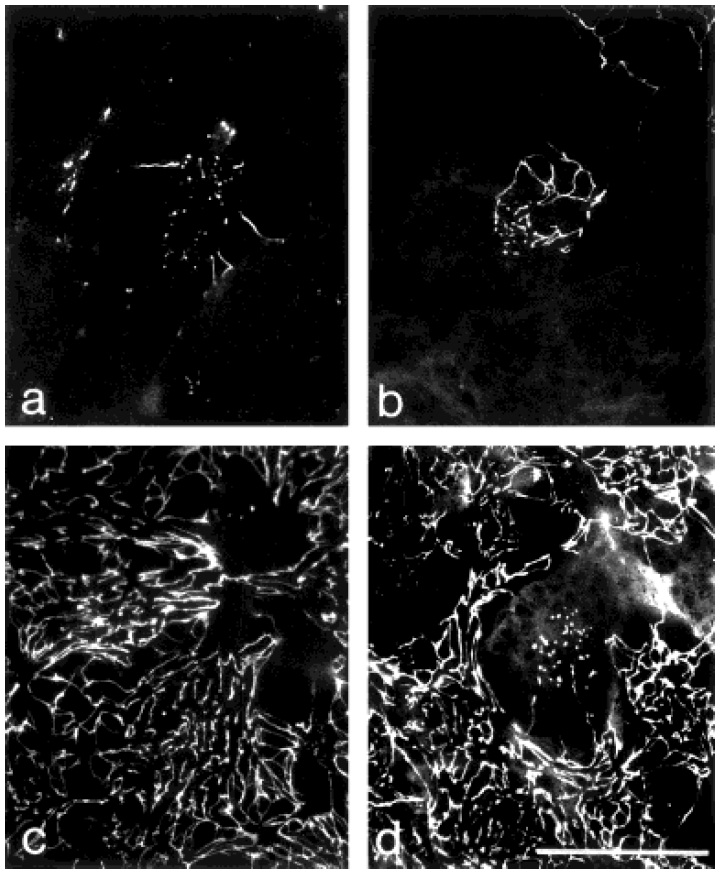 cultured for 2 hr in 4 μg/ml of bovine plasma FN (a), 15 μg/ml (b), 60 μg/ml